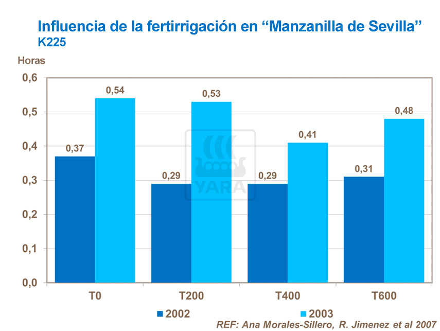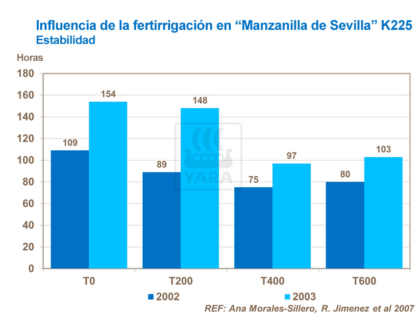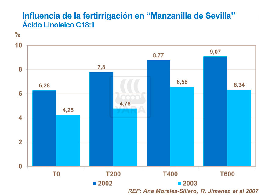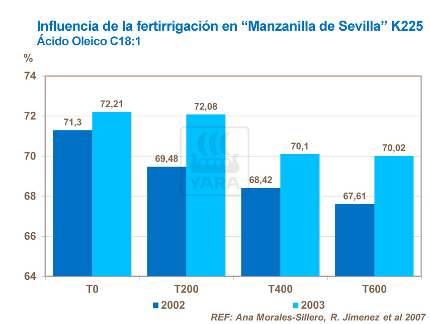 Un estudio en un olivar de "Manzanilla de Sevilla" en la provincia de Sevilla se llevó a cabo para estudiar cómo influyen los diferentes tratamientos de fertirrigación en la composición química del aceite de oliva.